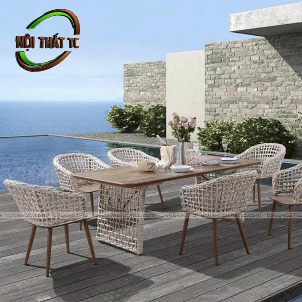 Bàn D150 x R90 x C75 cm | Ghế D60 x R55 x C85 cm